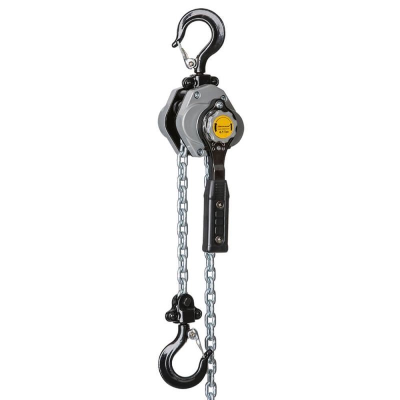 DELTA ALUM - Hebelzug ========================= - Haken: Geschmiedete Stahlhaken mit Hakensicherung - Lastkette: Verzinkte Lastkette nach EN 818-7-T - Einsatztemperatur: -10°C - +60°C - DGUV/BGV Lasttyp: Güter, darf nicht zum Heben von Personen verwendet werden